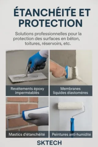 Depuis plus de 20 ans, SKTECH fournit aux professionnels du BTP et de l’industrie une large gamme de produits techniques de haute performance : revêtements époxy, étanchéité, adjuvants béton, mortiers, mastics, et solutions de réparation.